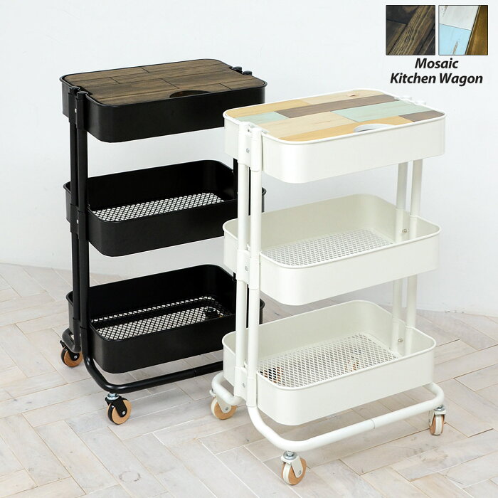バスケットトローリーs モザイク3段 キッチンワゴン 天板付き キャスター付き 6色 バスケット ワゴン サイドテーブル スチールラック ベビーワゴン おしゃれ おもちゃ箱 オムツ入れ ベビー用品 先行予約販売 1月中旬頃入荷予定 おむつ 収納 ワゴンがもっと評価され